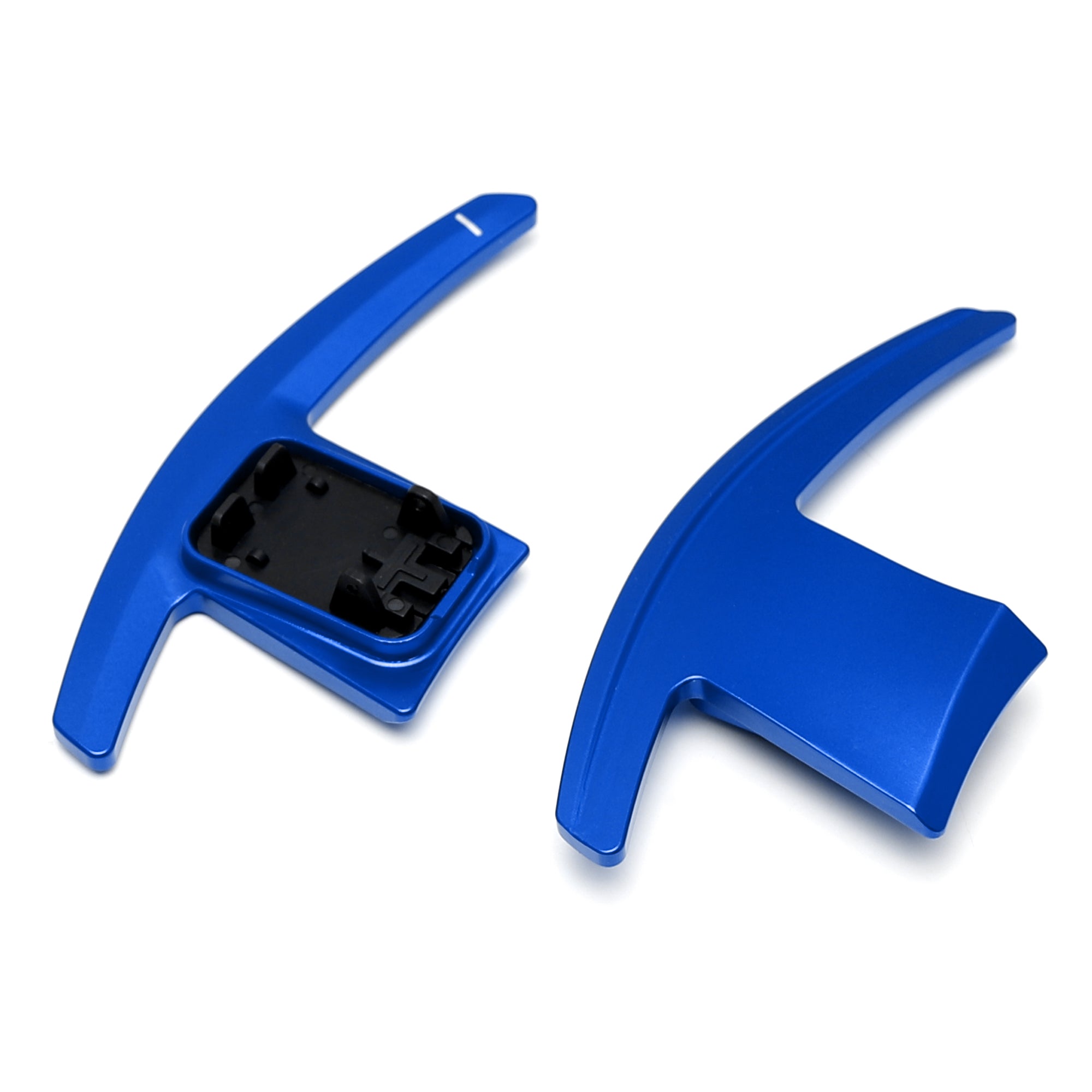 - Left/right 2 pieces of racing sports blue steering wheel paddle shift replacement extenders made from one piece cut CNC T6 billet aluminum